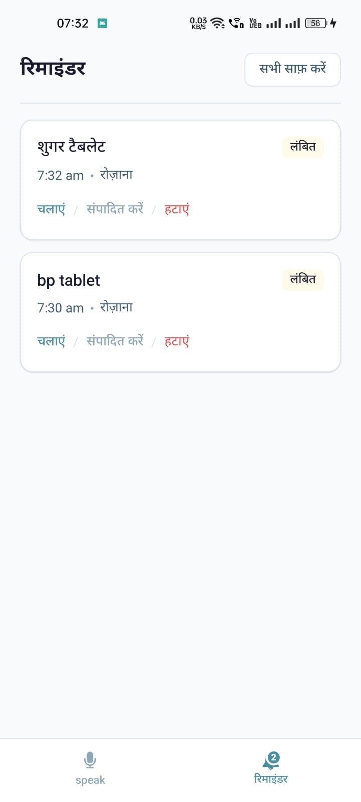- Hold the mic and speak naturally - say something like "roz subah 8 baje BP ki dawai yaad dilana"